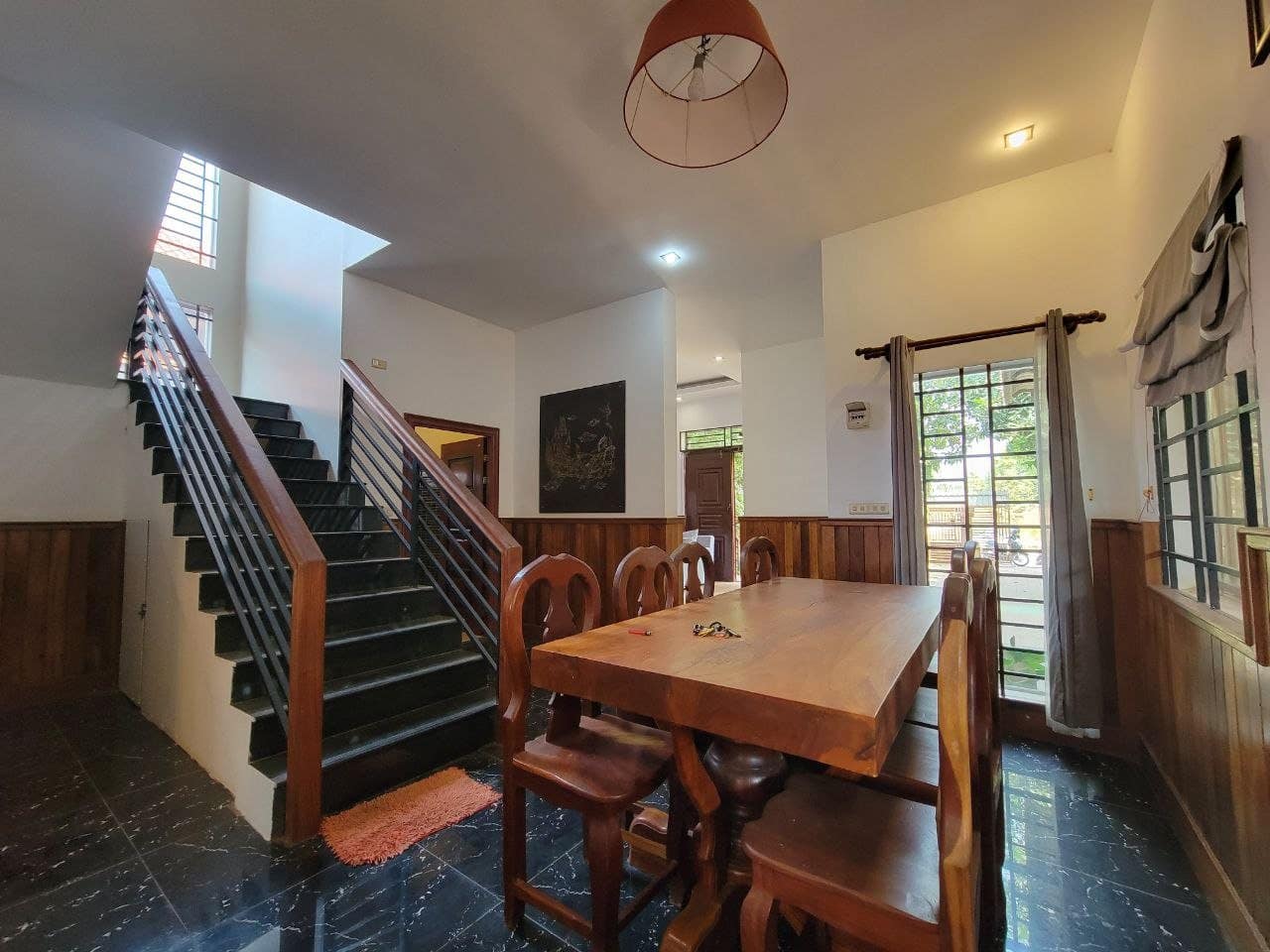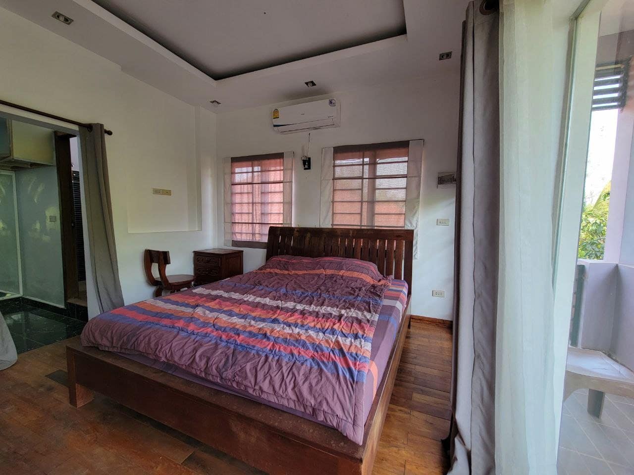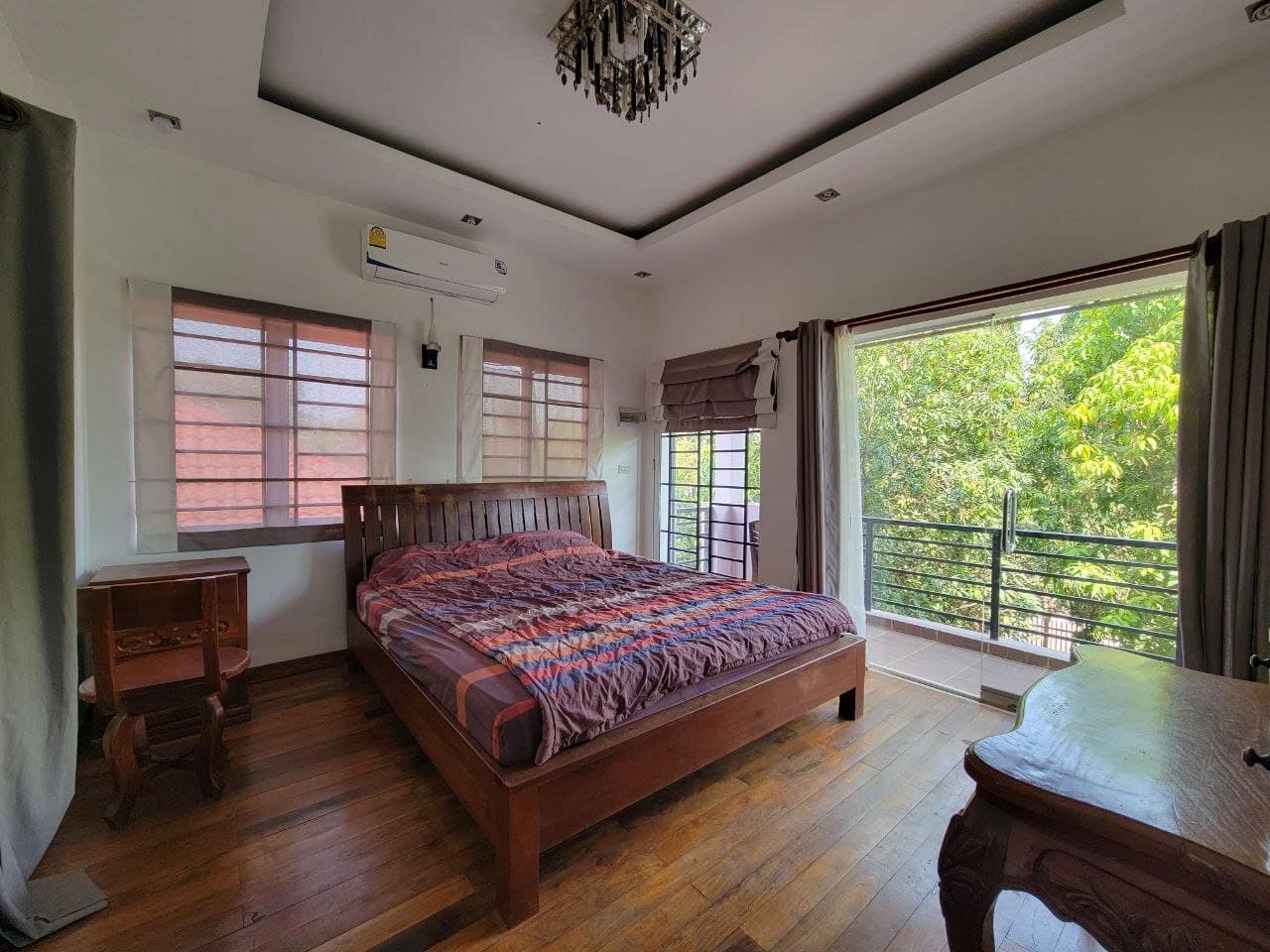 This private house is located in a quiet area of Sala Kareuk. There is a garden & lots of trees surrounding it.