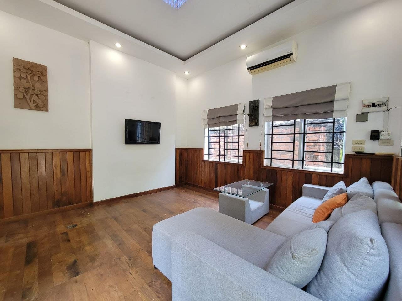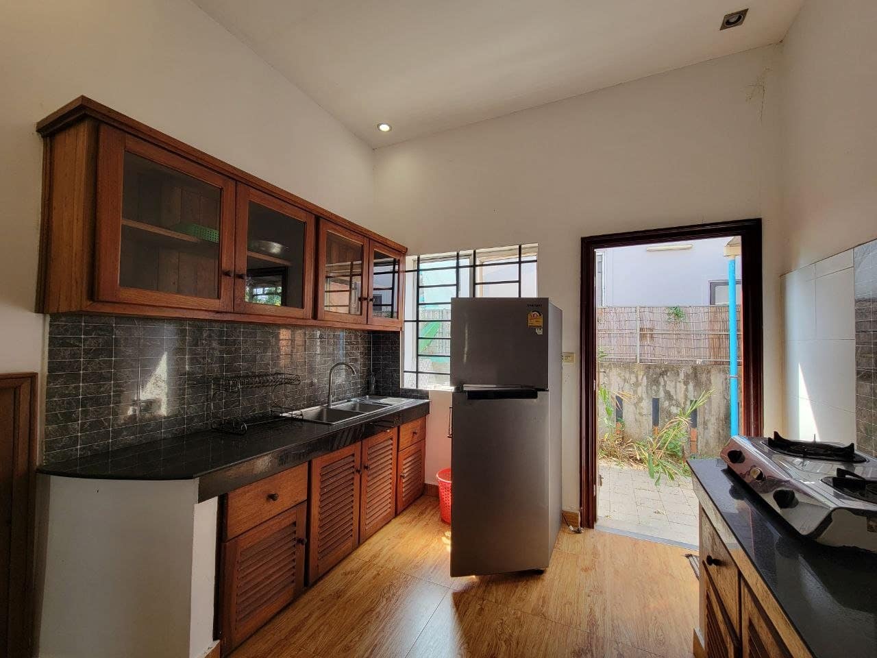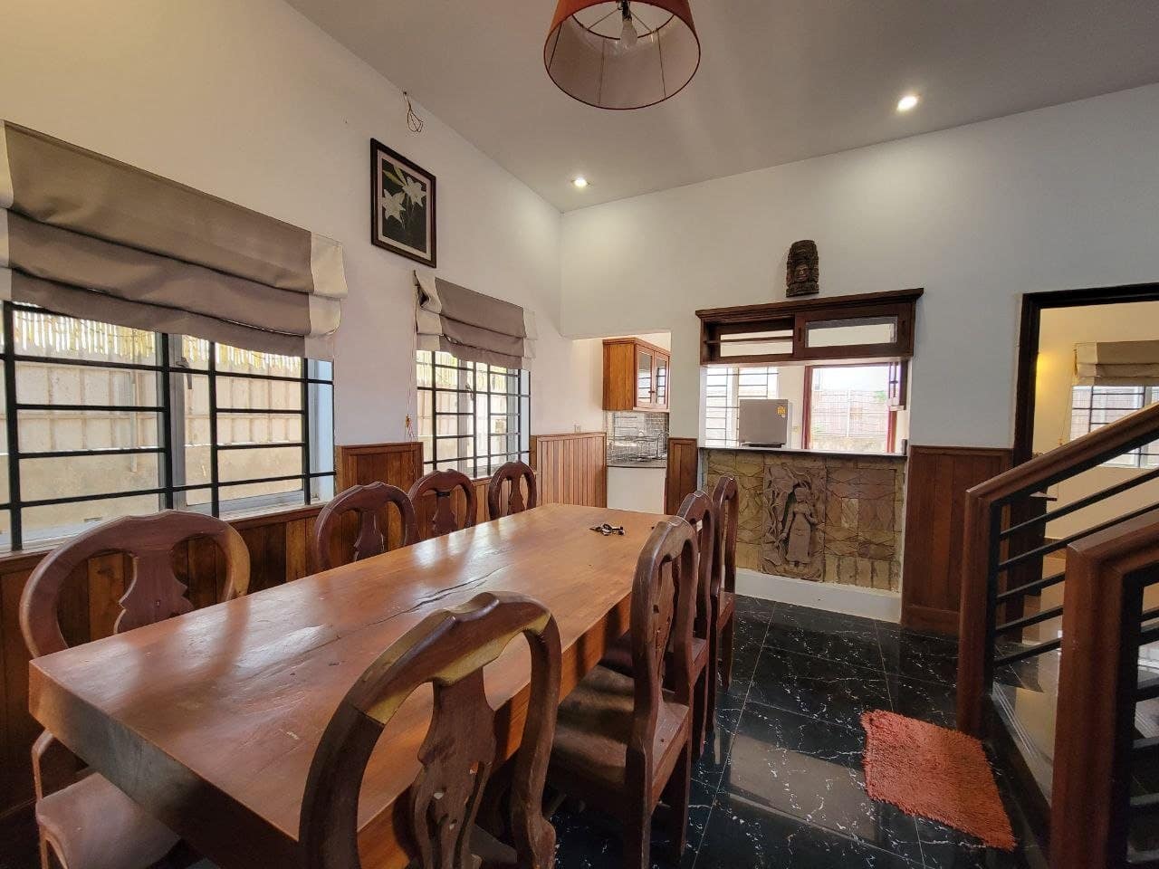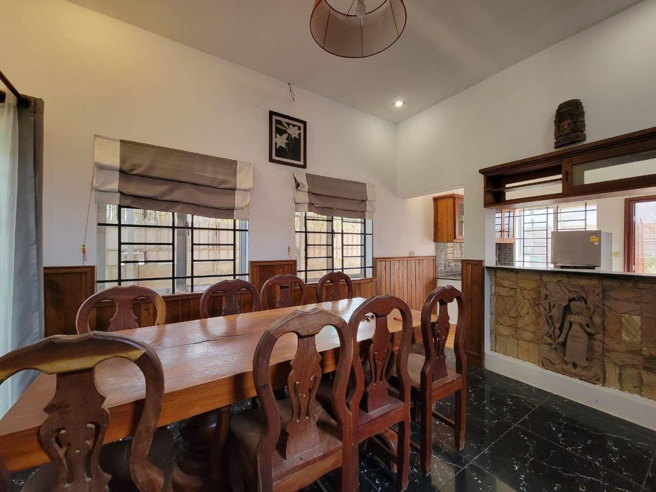 This private house is located in a quiet area of Sala Kareuk. There is a garden & lots of trees surrounding it.